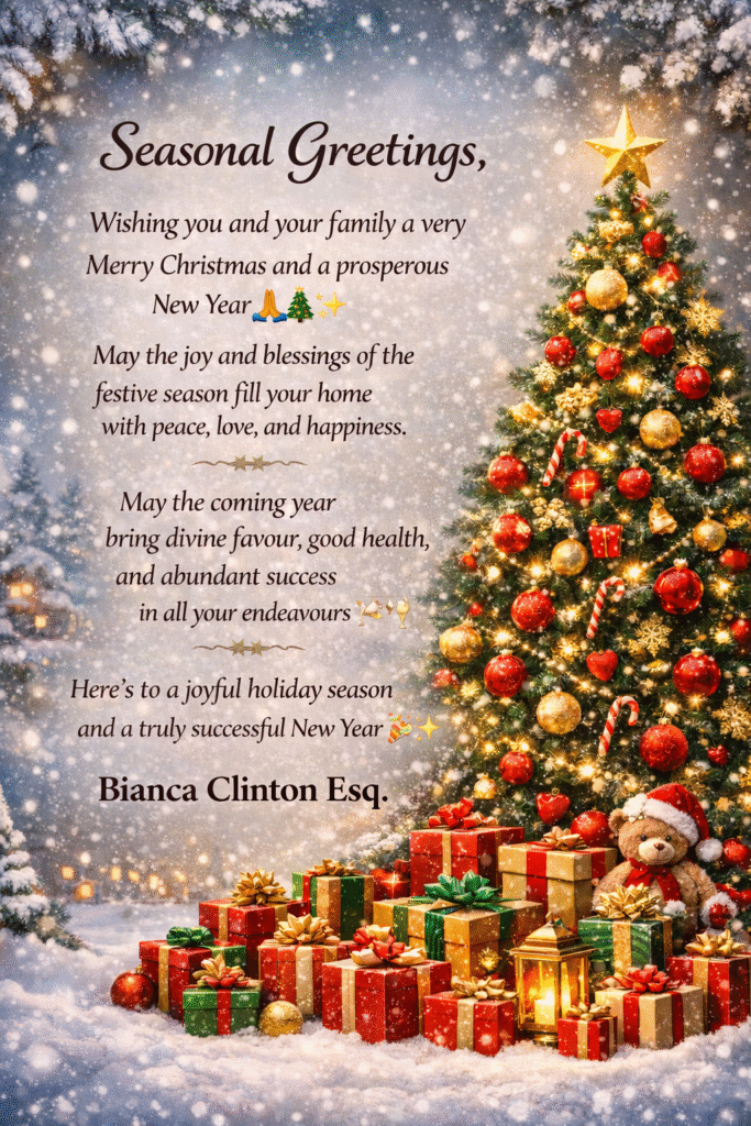 Christmas Message from Bianca Clinton ESQ | Corporate Lawyer in Ghana